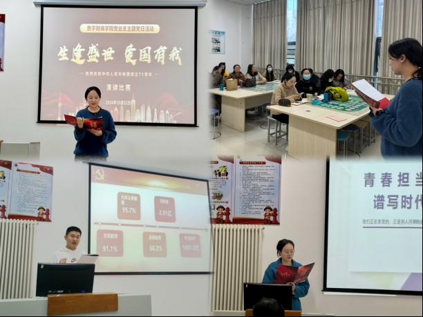 党总支活动10月22日,公司党总支在经管楼ERP实训室开展“生逢盛世,爱国有我——庆祝建国75周年”主题党日活动。本次主题党日活动以演讲比赛的形式进行,全体教师参加会议,活动由宣传委员王雨主持。党总...