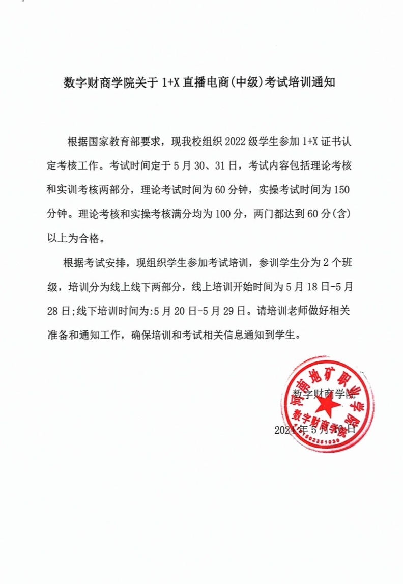 304永利集团关于1+X直播电商(中级)考试培训通知