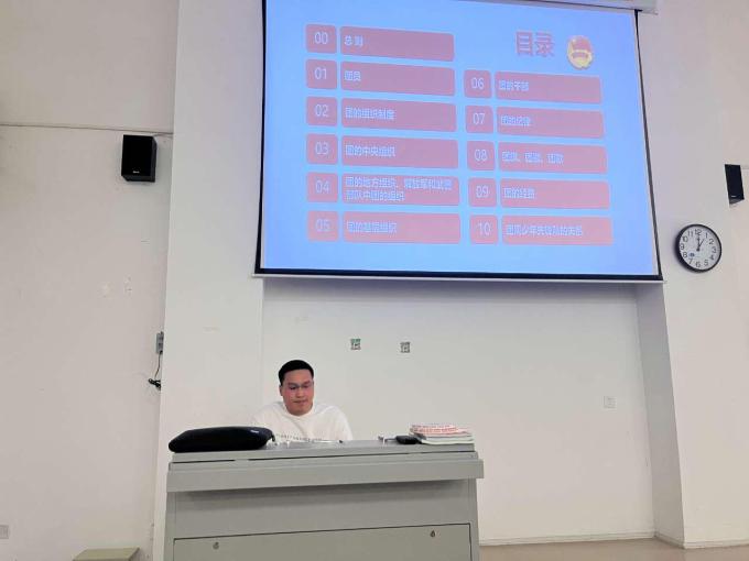团总支书记王雨为大家讲述了中国共青团的发展历程,带领大家梳理了在各发展阶段,青年挺膺担当、砥砺奋斗的事例以及团组织发挥的重要作用。