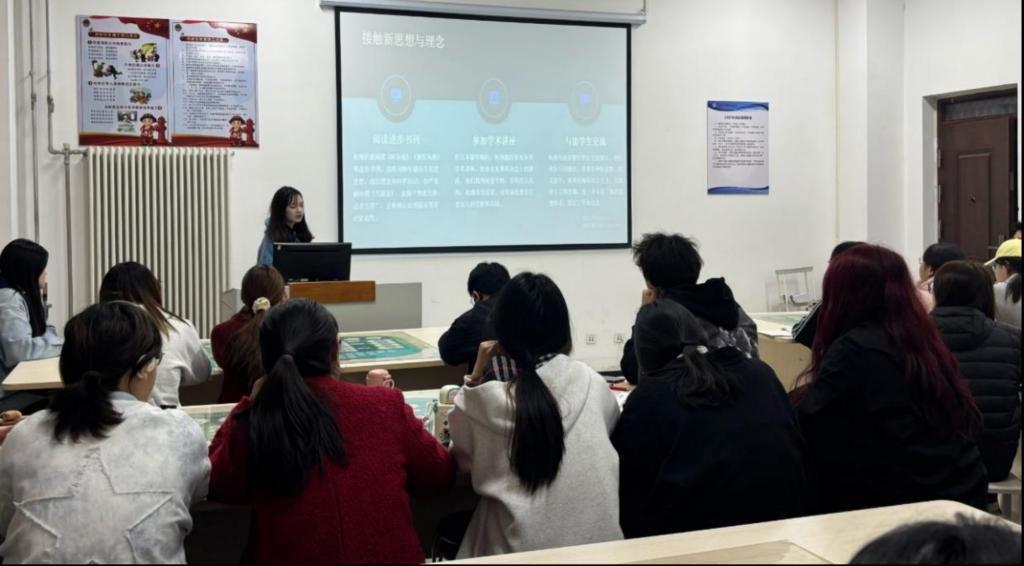 团总支组织部部长张珈仪以《新青年》红色影视剧为背景,带领同学们重温陈延年的英勇事迹,深刻体会幸福生活的来之不易,激励同学们传承革命精神,主动自我革新,提升觉悟,不断向团组织、党组织靠近,为新征程建设奉献青春力量。