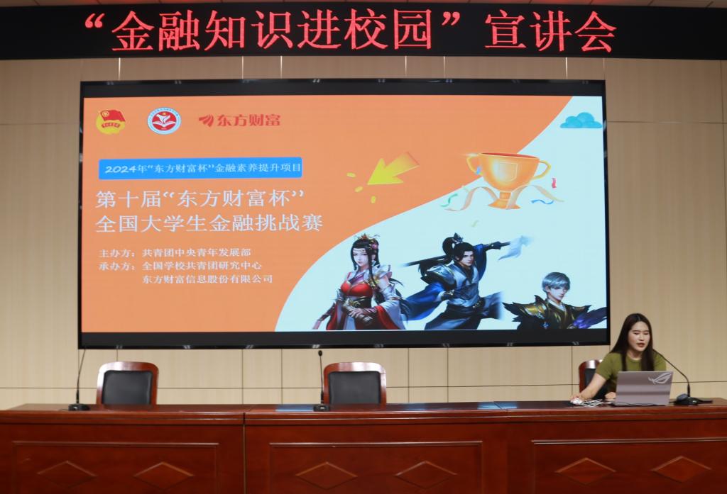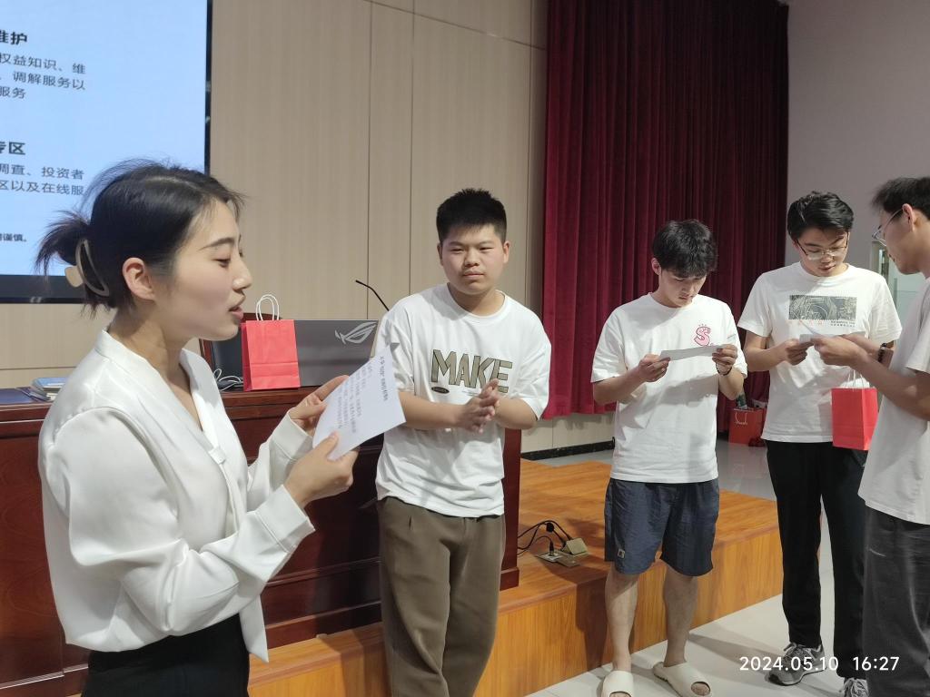 安琪以《防范金融网络诈骗,反诈理念进校园》为题进行金融安全主题讲座,从员工“中招”的原因及常见的诈骗手段入手,教导同学们如何防范网络诈骗。为进一步加深同学们对金融知识的理解,讲座结束后设置了提问互动和盲盒问答环节,同学们踊跃抢答,东方财富公司也为参与的同学送上了一份精美礼品。