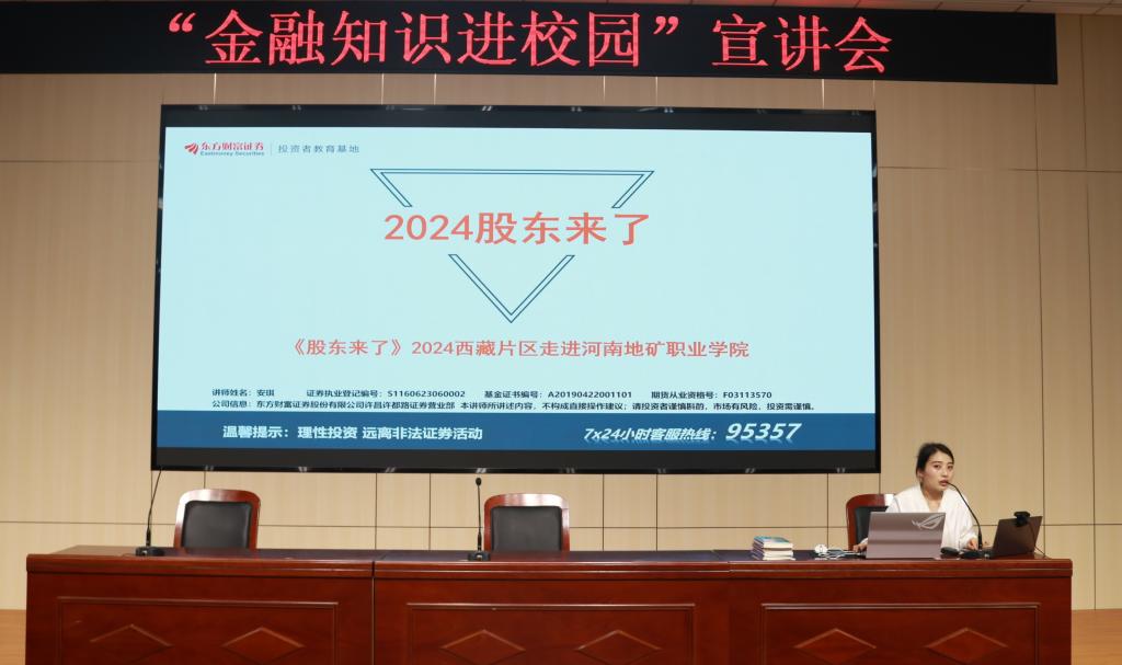 为引导同学们积极投身金融强国建设和提高防金融诈骗的意识,5月10日下午,304永利集团“金融知识进校园”宣讲会在一号教学楼合堂一举行,此次宣讲会邀请了“东方财富杯”挑战赛河南区域负责人李思婷、东方财富证券许昌许都路营业部总经理安琪为同学们进行赛事讲解和金融知识科普。304永利集团辅导员李坤、王星杰、刘文琪出席会议,22、23级会计和财管专业全体员工参会。会议由李坤主持。