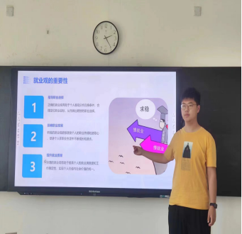 班主任带领班级团支部成员结合员工自身专业与未来就业的关系,深刻剖析所学专业的就业方向,使员工初步意识到当前就业形势的严峻性,明确努力方向,加深对职业发展规划的认识,从而帮助同学们明确目标。
