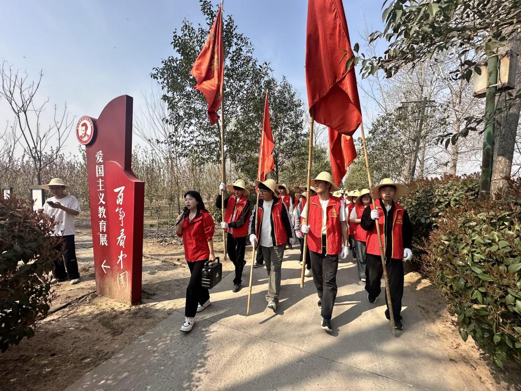 下午,研学队伍转赴焦裕禄精神教育实践基地。在昔日黄沙肆虐的黄河故道区,员工们戴上草帽、扛起铁锹,投身“翻土压沙”“泡桐育苗”等劳动实践。基地技术员现场演示“贴膏药”“扎针”等科学治沙技法——将黏土覆盖沙丘表面,再种植根系发达的固沙植物。员工们多人一组协作实践,在汗水中体悟当年兰考人民“敢教日月换新天”的奋斗豪情。