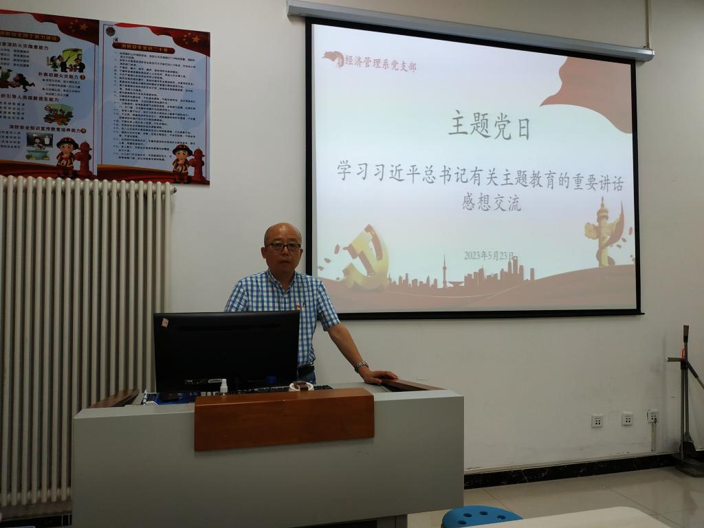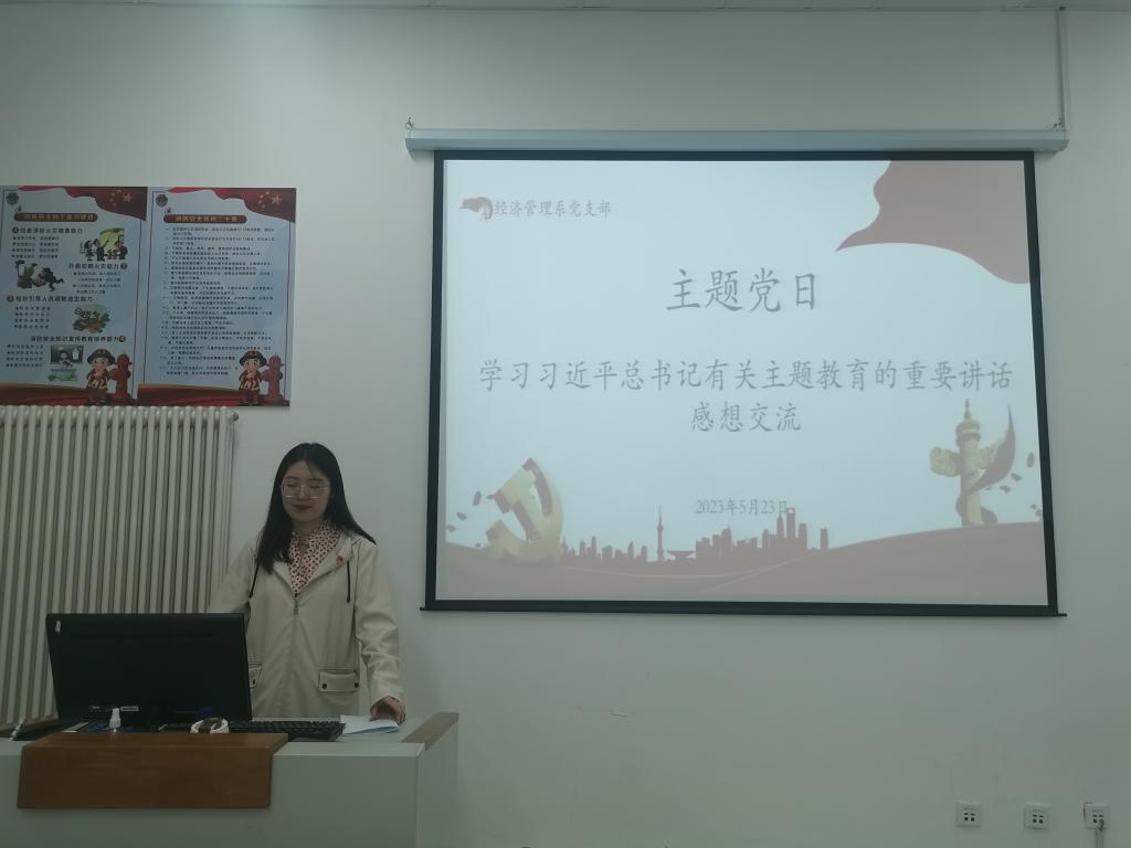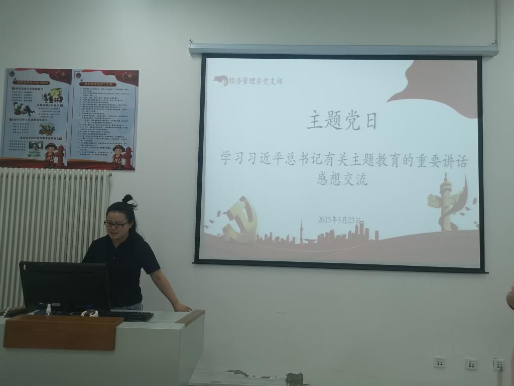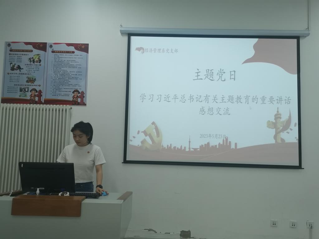 依据公司主题教育办公室的学习安排,结合我支部的学习实际,5月23日下午我系在经管楼ERP教室召开了全体党员大会,进行了“学习习近平总书记有关主题教育的重要讲话感想交流”主题党日活动。应到会党员18人,实际到会18人,会议由党支部书记陈宇同志主持,组织委员荀琳娜同志记录。