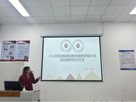 会上,首先由在2023年河南省职业教育课堂教学创新大赛获奖的吴若言和陈玥彤老师就大赛文件解读、备赛过程和内容、比赛注意事项以及赛后的反思总结等方面进行了讲解和分享;其次是技能大赛教师团队赛获奖的苏世娟、李想、韩意和荀琳娜老师,每个人都从自身的情况出发对备赛过程中的不足和比赛出题特点进行了总结;接下来职业技能大赛指导老师:王三平、杨明和李经纬老师各自分享了带队参赛的心得体会,包括选人组队、竞赛软件、备赛心态、比赛流程以及努力方向等诸多方面,并表示收获了美好的师生关系;最后,李莹老师作为职业教育课堂教学创新大赛现场竞赛评委,为大家呈现了不同视角下大赛的评判标准,讲解了工作流程,分享了现场感受和课程建设感想。