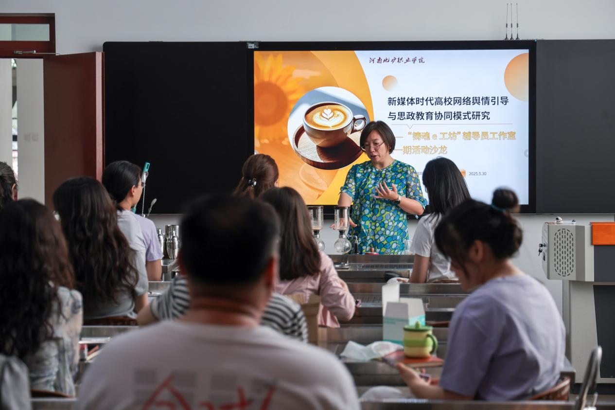 凝心聚力,悦享时光。本次活动让广大辅导员在忙碌之余,感受咖啡制作带来的宁静与放松,同时共话成长,共享经验,让大家对网络思政建设和舆情引导协同模式有了进一步思考,推动了工作室的内涵建设。