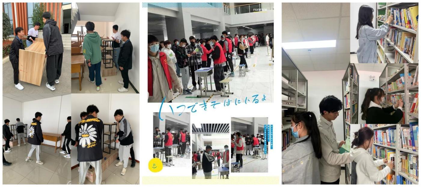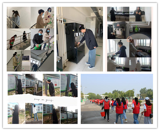 (1)绿色校园行动:同学们走进教学楼、宿舍楼、图书馆、实训室、校园绿化带,对部分设备设施进行细致整理与清洁