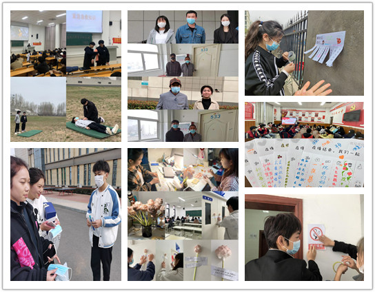 (2)蓝色安全教育实践:开展校园防诈骗宣传、提醒校园行人佩戴并发放口罩、安全急救实操、安全标识粘贴等行动