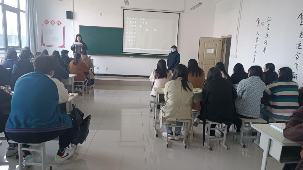 3月7日是员工返校上课第一天,系书记陈宇带领辅导员任佳慧深入教室对员工返校上课情况及老师授课情况进行检查。