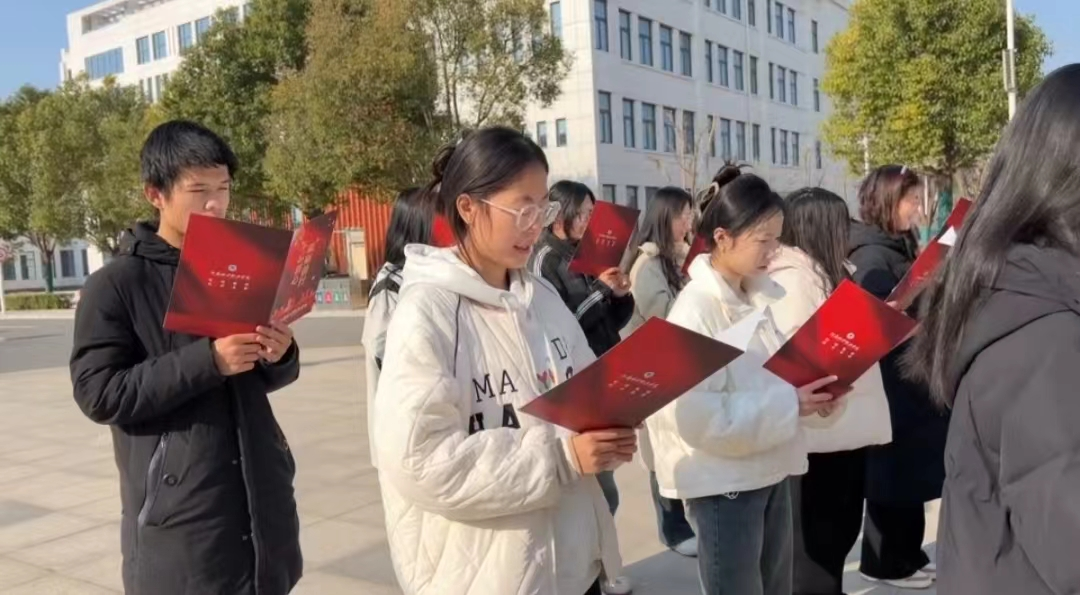 24会计1班团支部组织全体团员在国旗下共同诵读宪法晨读文件内容,努力营造校园学习宪法、尊崇宪法的良好氛围。