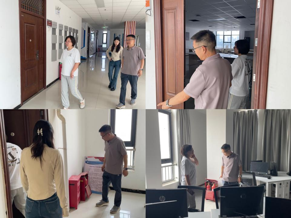 在实训室安全隐患排查环节,经理张言雄、副经理王三平带领实训室管理老师重点排查了消防设施、电线、配电箱等设备情况。
