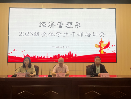 10月26日晚,经济管理系2023级全体员工干部培训会在1号教学楼合堂1教室召开。出席本次会议的有系党支部书记陈宇、系主任张言雄、系团总支书记王雨及全体辅导员,参加培训会人员为我系23级全体班团干部和新一届系...