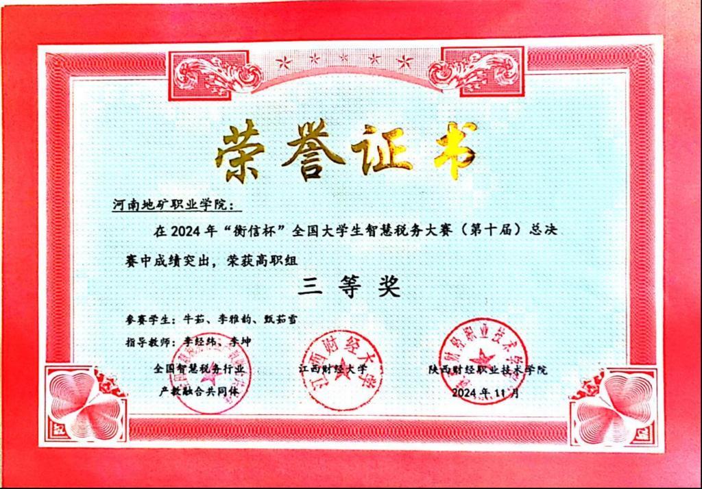 实践实训教学环节包括在校内进行会计信息化软件应用、财税综合等实训课程以及模拟实训操作。本专业校内建有财税管理综合实训中心、大数据会计创新实训中心、会计手工模拟实训室、会计电算化实训室等,可供400人同时进行实习实训。在岗课赛证背景下,员工在指导老师带领下通过实训连续在省技能大赛会计实务赛项和业财税融合赛项、“一带一路”暨金砖国家技能发展与技术创新大赛数字化新文科赛项、智慧税务等各类比赛中荣获佳绩,未来会深耕技能大赛,更上一层楼,继续涉足国家级财务数字化赛项。